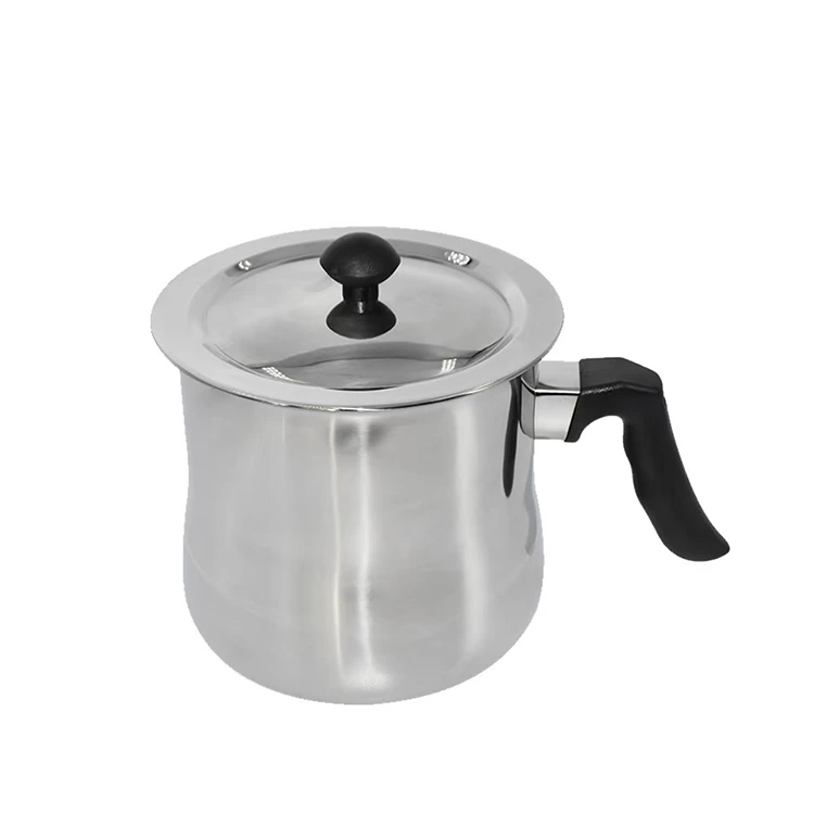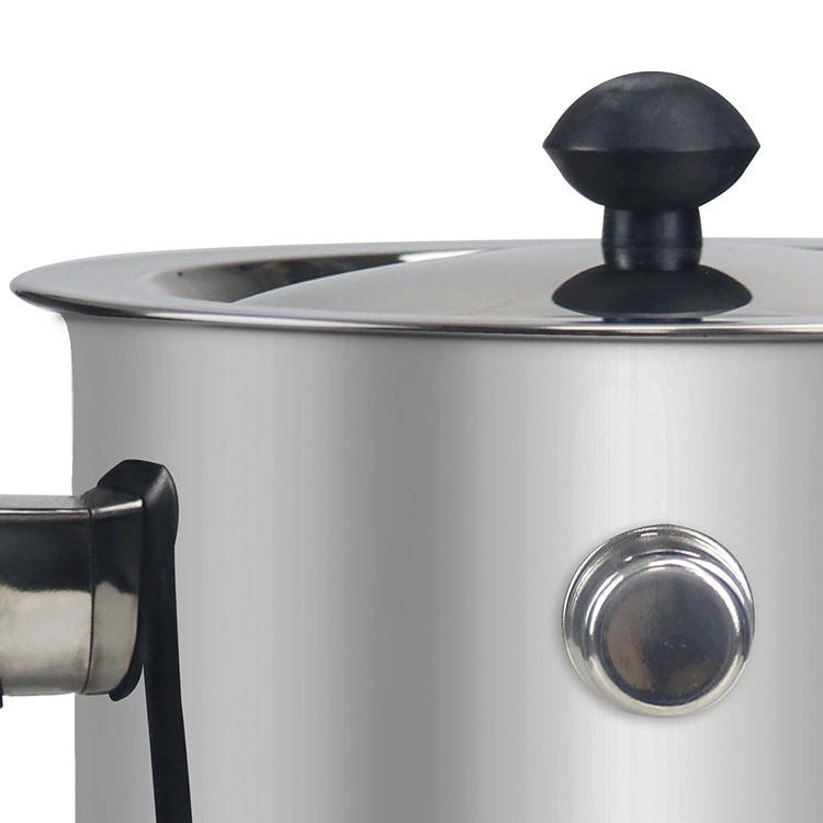 Erstens der hitzebeständige Griff: Der Topf ist mit einem stabilen, hitzebeständigen Griff ausgestattet, der so konzipiert ist, dass er bequem in der Hand liegt, sodass Benutzer den Topf leicht halten und bewegen können, ohne sich zu verbrühen, was eine sichere Bedienung gewährleistet. Der Griff ist fest mit dem Topfkörper verbunden und lässt sich nicht leicht lösen, was eine langfristige Nutzungssicherheit gewährleistet. Zweitens der Edelstahldeckel: Der Topf ist mit einem transparenten Edelstahldeckel ausgestattet, der es Benutzern ermöglicht, den Zustand der Materialien im Inneren (z. B. Wachsschmelzen, Schokoladenschmelzen, Milchkochen) klar zu beobachten, ohne den Deckel öffnen zu müssen, wodurch Wärmeverluste und Materialspritzer vermieden werden und die Echtzeitkontrolle des Verarbeitungsprozesses erleichtert wird.