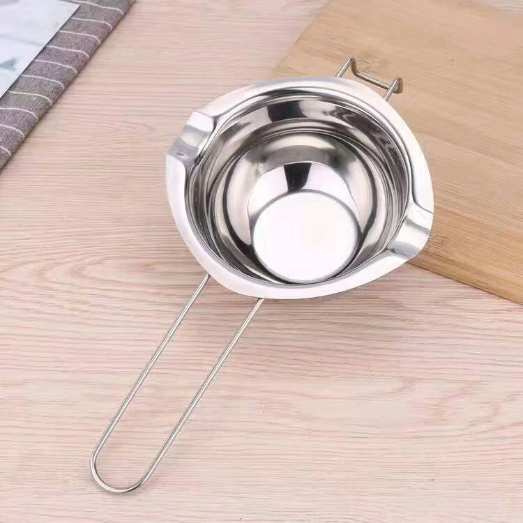 In der Küche wird es häufig zum schonenden Erhitzen und Schmelzen verschiedener Zutaten verwendet: zum Schmelzen von Schokolade zum Backen von Kuchen, Keksen und Desserts; Erhitzen von Milch, Sojamilch und Sahne ohne Anbrennen; Butter, Schmalz und andere Fette zum Kochen schmelzen; Es kann auch zum Erhitzen von Honig, Sirup und anderen viskosen Zutaten verwendet werden, um die Fließfähigkeit wiederherzustellen. Die Erhitzungsmethode im Wasserbad sorgt dafür, dass die Zutaten ihren ursprünglichen Geschmack und Nährwert behalten und ein Anbrennen und Anhaften am Topf vermieden wird.
